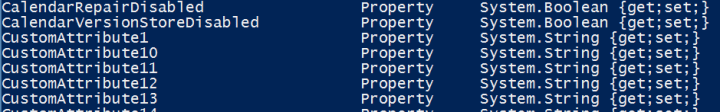 Bingo! One of the properties available for the “”Get-MailboxCalendarConfiguration” command is called “RemindersEnabled”. Also, you can see included in the properties definition is “{get;set;}”. This means we can apply a value to the RemindersEnabled property using the verb “Set”.