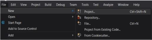 First, open Visual Studio and go to File > New > Project (CTRL + Shift + N) as shown below in Figure 8.