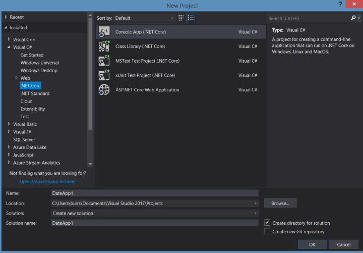 For this example, I will create a C# application that will retrieve the current date/time and output the results to the console screen. I will be using Visual Studio Community 2017 to accomplish this task.