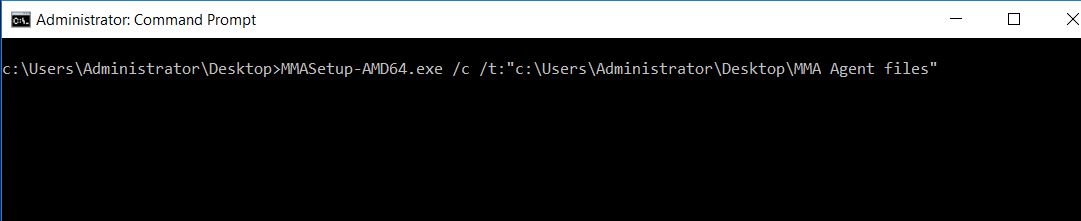 Now that the Registry edits have been completed, the MMA can be installed.  There are three options for installing the agent: the installation wizard, command line or Powershell DSC.  In this case, I will use the command line.  Also, there are two agent options:  a 64-bit and 32-bit version.  Once the appropriate agent has been downloaded, open an elevated command prompt, navigate to the location of the file and run the following command to extract the MSI file to a folder path.  Finally, install the agent with the extracted MSI file.