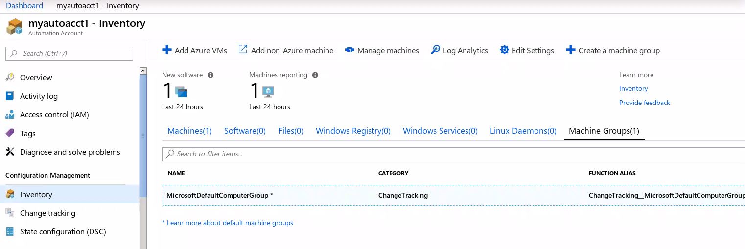 I’m not going to outline the steps of creating the above resources.  Here, I will just focus on the process of enabling and using Inventory.
