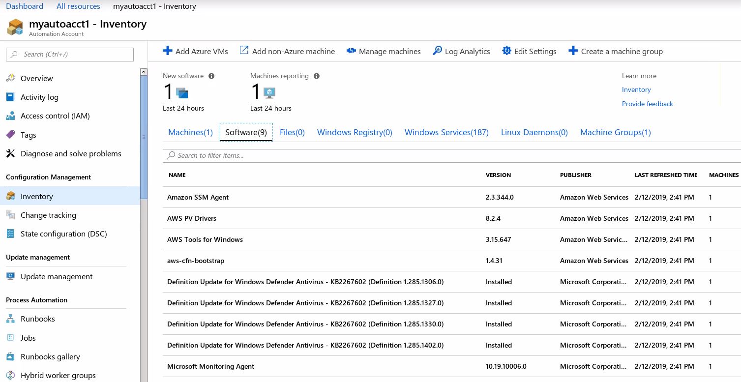 This article will be the first in a three part series that covers the components of Azure Configuration Management and how they can be used with a virtual machine running in AWS EC2. In part 1, I will show you how to get started using Inventory and provide an overview of it’s capabilities.  Part 2 will cover Change Tracking and Part 3 will outline State configuration (DSC).