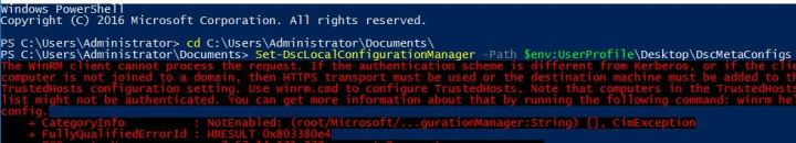 Problem 2 – when I ran the Set-DscLocalConfigurationManager command again after allowing Powershell remoting in the EC2 Security group, I got this error: