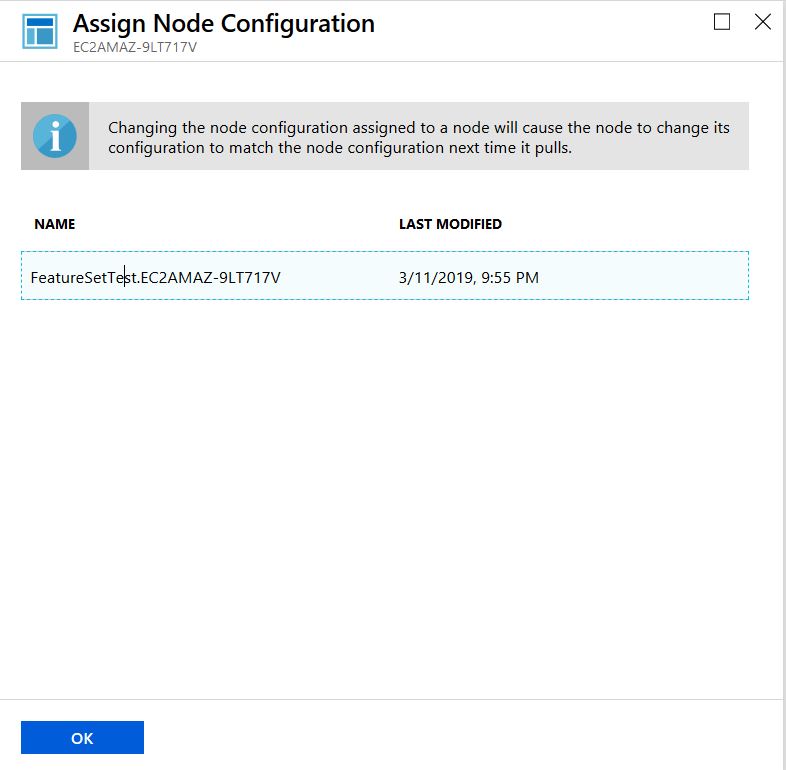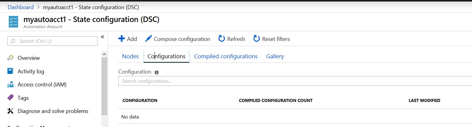 I’m not going to walk through the steps of writing a DSC script, but only provide an overview of assigning it to a node. Once the import is complete, the config file is now available under “Configurations“.