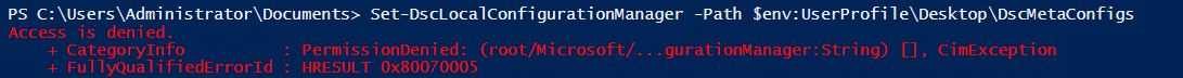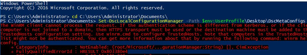 Problem 2 – when I ran the Set-DscLocalConfigurationManager command again after allowing Powershell remoting in the EC2 Security group, I got this error: