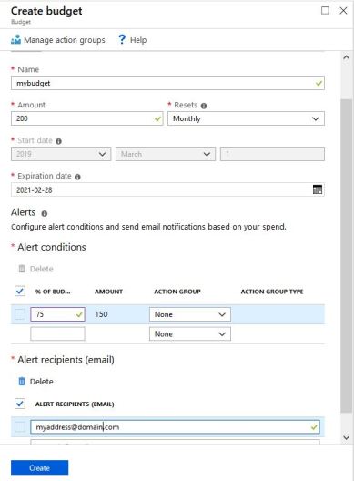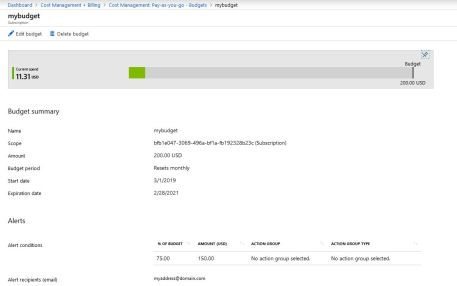 In conclusion, it’s very easy to setup a budget for your Azure subscription as way to manage costs and receive alerts when your are close to exceeding your spending limit. Budgeting is not the most glorious task but it’s necessary to avoid spending more than you can handle.
