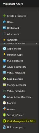 In the Azure Portal go to the Cost Management + Billing menu blade.