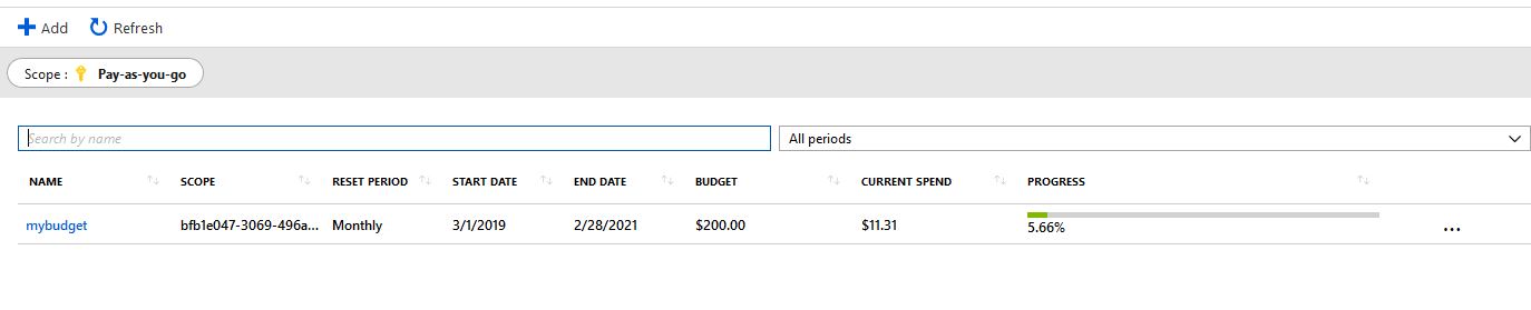 In conclusion, it’s very easy to setup a budget for your Azure subscription as way to manage costs and receive alerts when your are close to exceeding your spending limit. Budgeting is not the most glorious task but it’s necessary to avoid spending more than you can handle.