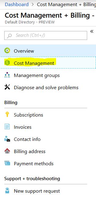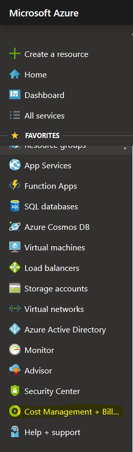 In the Azure Portal go to the Cost Management + Billing menu blade.